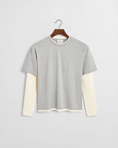 Layered Long Sleeve T-Shirt - Grey / Cream